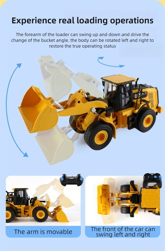 Φτιαγμένο από ανθεκτικά υλικά, αυτός ο φορτωτής σε κλίμακα 1:24 είναι κατασκευασμένος για να αντέχει το ενθουσιώδες παιχνίδι.με κινητό μπροστινό κουβά που μπορεί να ανεβαίνει και να κατεβαίνειΤα ζωντανά χρώματα και οι λεπτομερείς προτάσεις προσθέτουν στην ρεαλιστική του ελκυστικότητα, προκαλώντας φαντασία και ενθαρρύνοντας δημιουργικά σενάρια παιχνιδιού.επαναφορτιζόμενη μπαταρία, εξασφαλίζοντας συνεχή διασκέδαση χωρίς την ανάγκη συνεχούς αντικατάστασης μπαταριών.